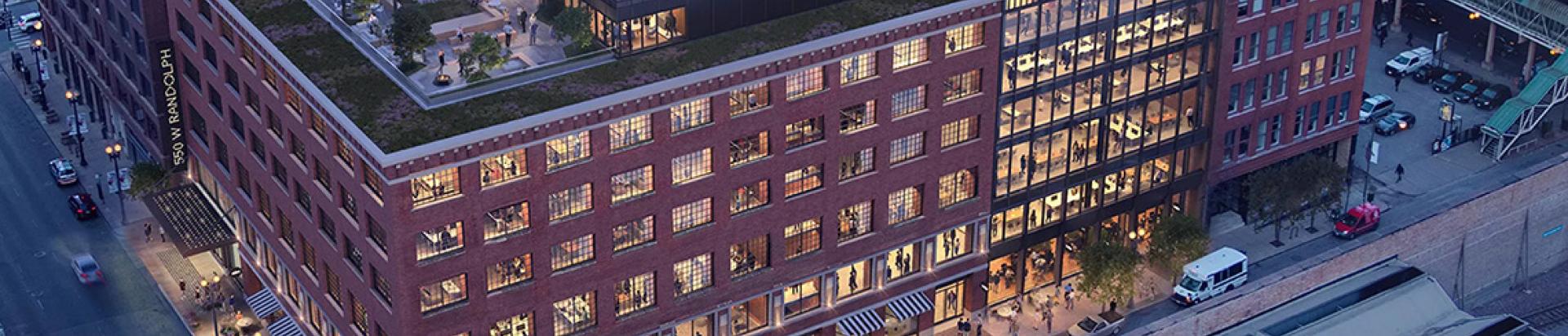 The slender development replaces a parking lot and incorporates a historic five-story building at Randolph and Jefferson