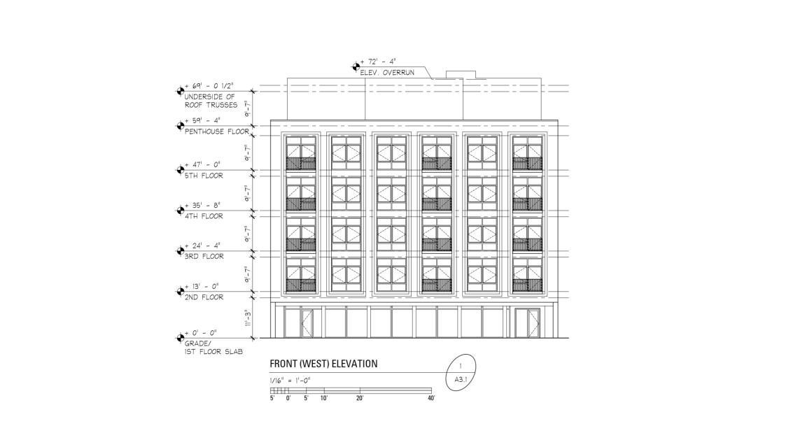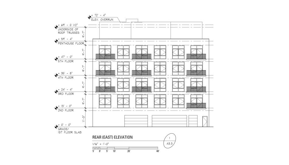 Topping out at 72 feet, the building’s facade will be clad in brick with black windows and metal paneling.