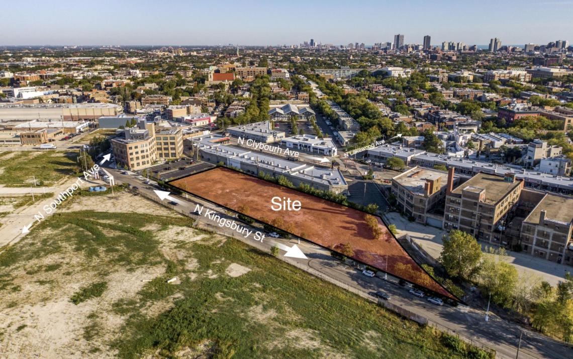 The Chicago Plan Commission has approved Sterling Bay’s proposed mixed-use development at 2033 N. Kingsbury. Originally announced in September 2022, the project site is directly across the street from Lincoln Yards North. With a combination of low-rise retail buildings and parking lots surrounding the site, the tower will be a middle ground between the new high-density towers of Lincoln Yards and the low-rise neighbors along N. Clybourn Ave.