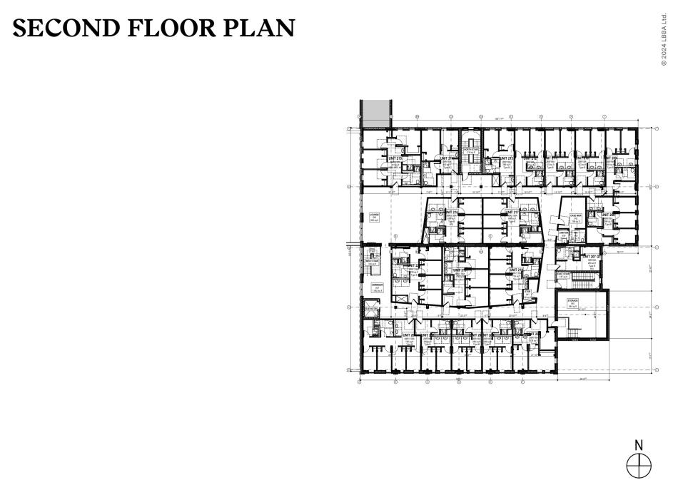 The building plans include a complete interior build-out of the furthest east building to establish non-congregate shelter space, including dorm-style sleeping room configurations of 2-4 sleeping rooms with a shared bathroom, an elevator installation, and dining and community space, all of which is planned to be accessible.