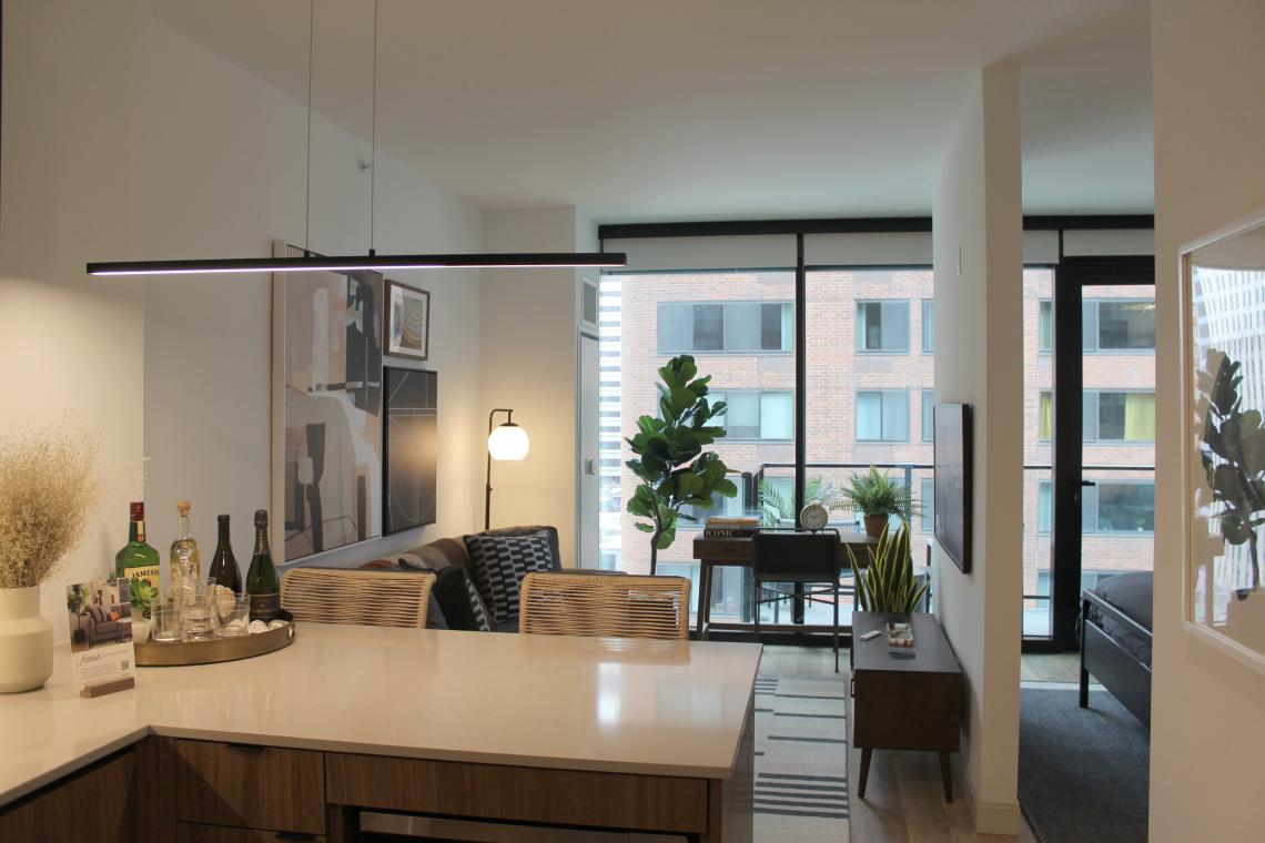 Our final stop was three model units on the eighth floor. Seeing a convertible, one bed plus den, and two-bedroom configurations, residents will have floor-to-ceiling windows, private balconies for select units, in-unit laundry, and luxury finishes.