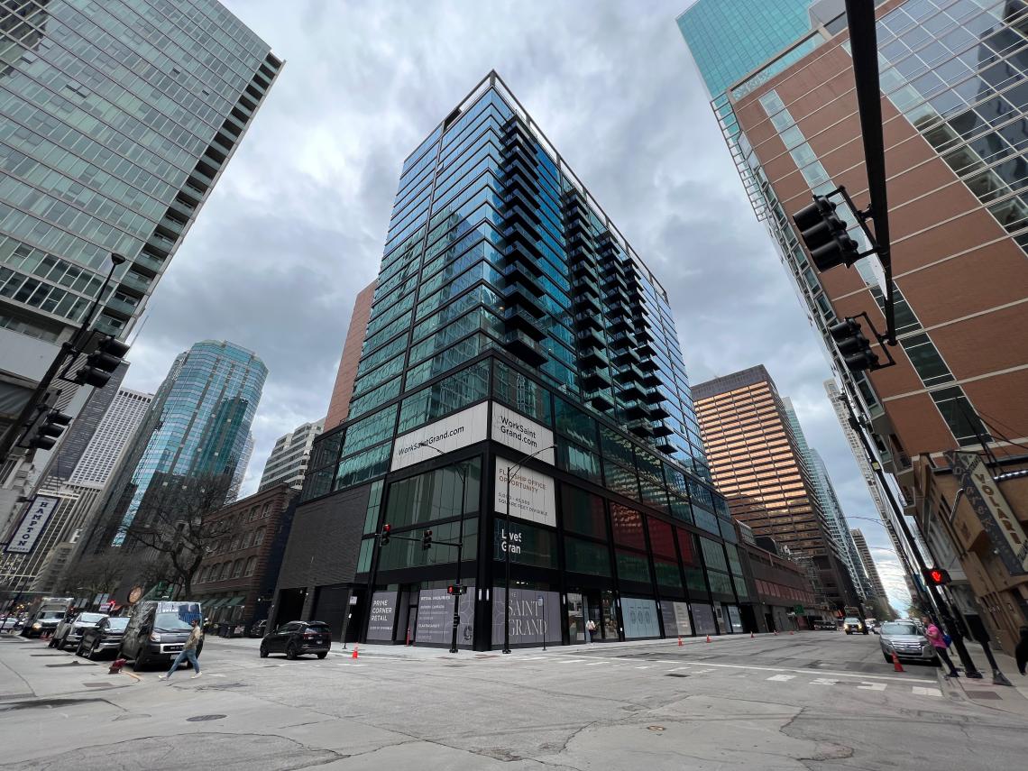 Urbanize recently toured The Saint Grand, a mixed-use development wrapping up construction at 218 E. Grand in Streeterville. Planned by Mavrek Development, GW Properties, Luxury Living, and Double Eagle Development, the structure topped off over the northeast corner of N. St. Clair St and E. Grand Ave back in August 2023. NORR was the architect for the building with Lendlease leading construction.
