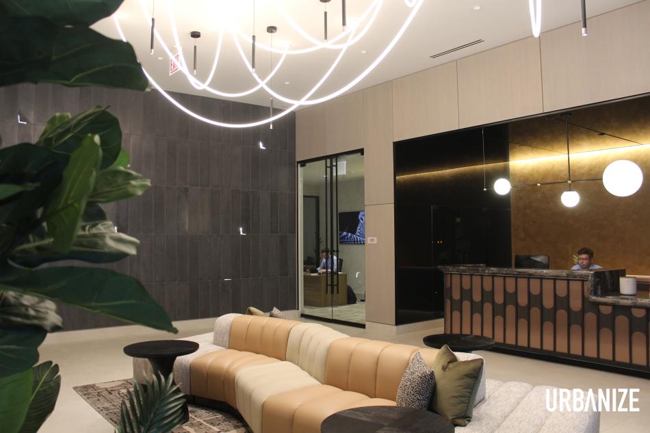 With the tour led by Mavrek Development and Luxury Living, we began by seeing the lobby, which fronts E. Grand Ave. The lobby space features a food delivery room tucked out of site and a leasing center for easy access with potential tenants. The building includes 7,500 square feet of ground floor retail space at the corner of the site that is ready to be built out and a bike room in the back is available for residents and office tenants.