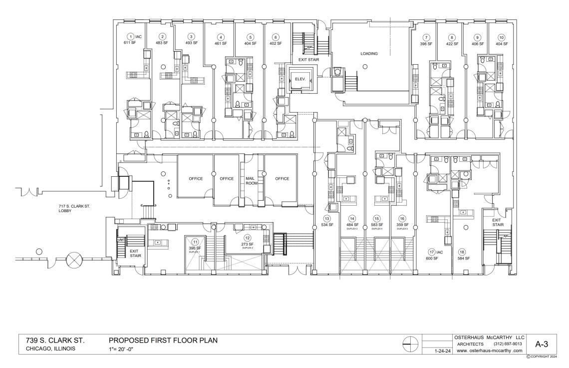 The Zoning Board of Appeals has approved a set of variances for the planned office to residential conversion at 739 S. Clark. Planned by CMK Companies, the existing office building was part of the Imprint development completed just before the COVID-19 pandemic. The three-story commercial building was reclad and listed for office leases but got no tenants as a result of the pandemic.