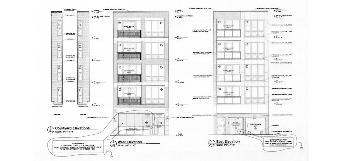 On the upper floors there will be two residential units per floor for a total of eight dwelling units. Each unit will have two bedrooms and two baths as well as outdoor balconies facing either N. Wells St or the alley.