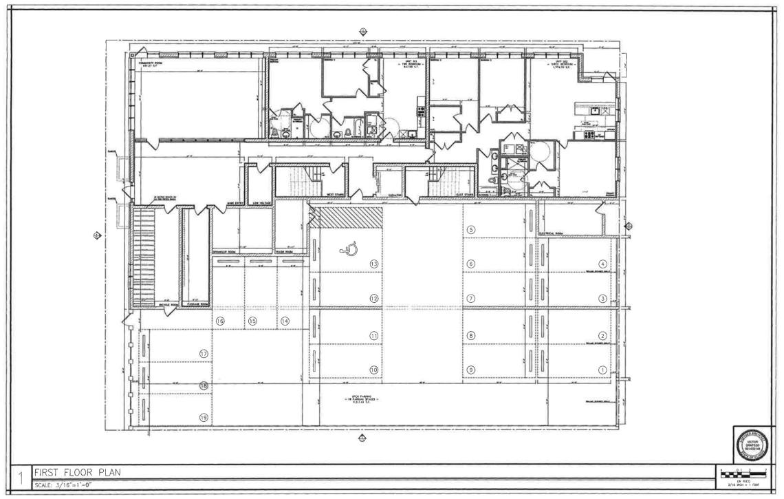The ground floor will have a community room space overlooking the corner of W. Fullerton Ave and N. Campbell Ave, with a three-bed apartment and a two-bed apartment finishing out the W. Fullerton Ave street frontage. The residential entry will face N. Campbell Ave with the bike room accessed from the lobby. Parking is located at the back of the site.